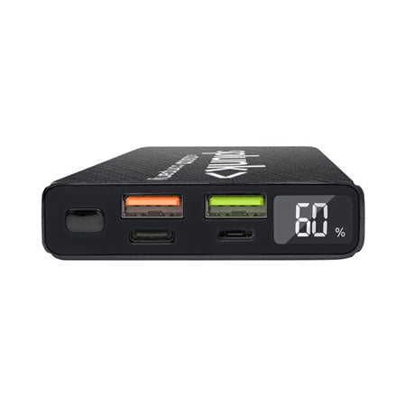 10000 mAh (37Wh) Quick Charge: PD22.5 Watts, Wireless Charging: 15 Watt. Lithium Polymer battery, Dual Input: Micro and Type-C: DC 5V/3A (max), DC 9V/2A (max), DC 12V/1.5A (max). Type-C and USB 2 Output: DC 5V/3A, DC 9V/2A, DC 12V/1.5A. USB 1 Output: DC 5V/4.5A, DC 9V/2A, DC 12V/1.5A. Battery Charge Time: 3-4 hours (3A), Number of Device Charges: iPhone 13 (187%), iPad Air 4 (78%), Samsung S22 (163%), Charge Cycle > 500 times.
